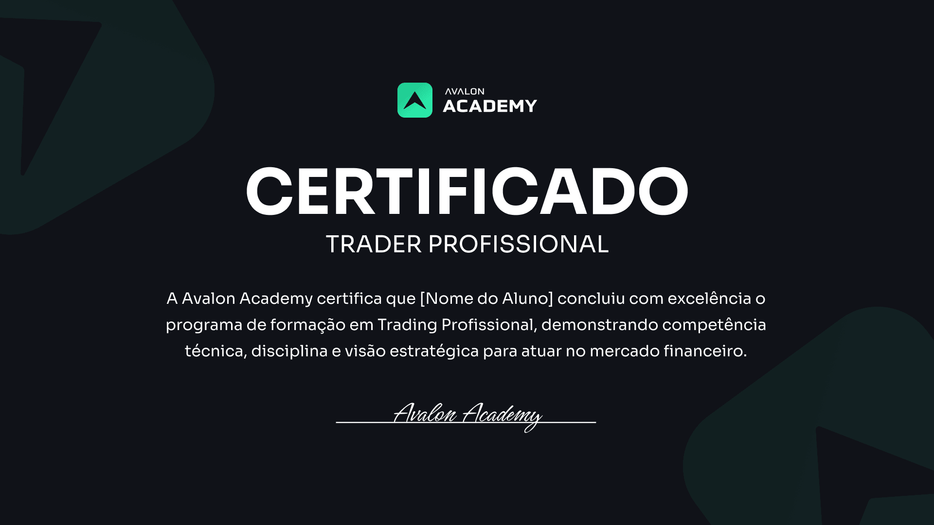 Upon completing the full training at Avalon Academy, you receive an official Trader Professional certificate, proving that you have undergone a solid education, with applied content and real market practice.